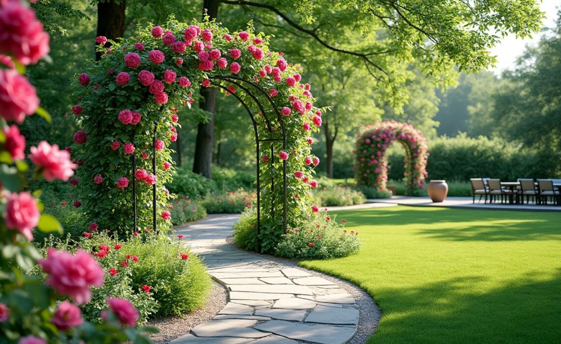 Aménagement paysager avec des arceaux de jardin